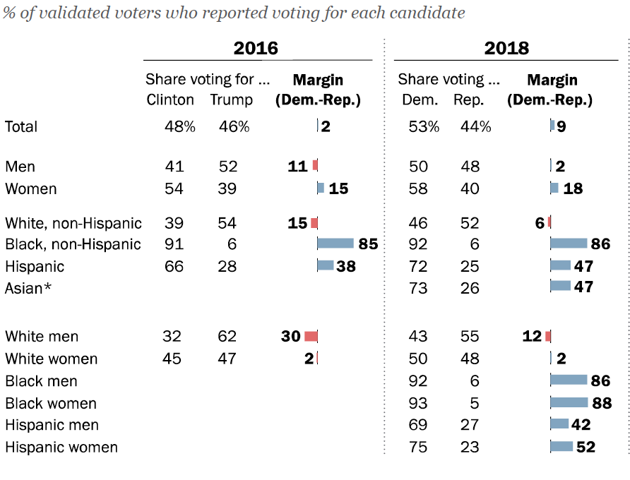 In 2018, they won over Latinos by 47 points and young people by 49. Black voters hovered around 90 percent in support of Democrats.